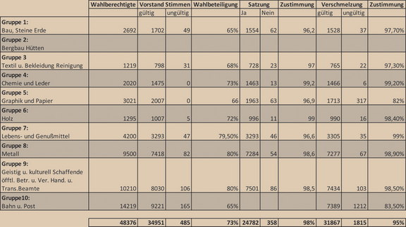 Mitglieder in ihren 9 bereits aktiven Gewerkschaften in einer Urwahl über die Satzungen sowie den Zusammenschluss in einem Gewerkschaftsbund abgestimmt. Das Ergebnis war eindeutig: Den Satzungen wurde mit 98% zugestimmt und 95% stimmten für eine Verschmelzung zu einem Gewerkschaftsbund. Die Wahlbeteiligung lag bei 73%. Damit hatten die freien Münchner Gewerkschaften eine neue Heimat nach Jahren der Verfolgung und des Kriegs.