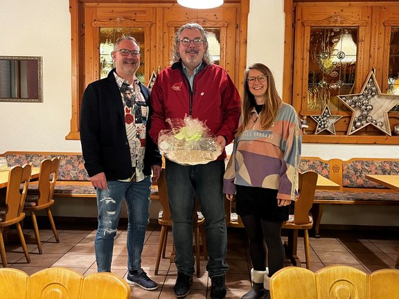 Bildunterschrift: Wolfgang Kurzendorfer und Katja Ertl verabschieden Tom Hiltl