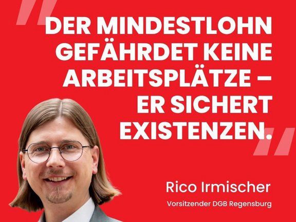 „Schon vor Einführung des Mindestlohns war die angeblich bevorstehende Vernichtung von Arbeitsplätzen die größte Drohgebärde der Arbeitgeberverbände. Gestimmt hat sie nie. Wir müssen endlich aufhören, alte Mythen über den Mindestlohn immer wieder aufzuwärmen“, sagt Rico Irmischer, Vorsitzender des DGB-Kreisverbands Regensburg.