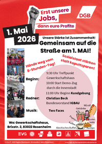 9:30 Treffpunkt Gewerkschaftshaus / 10:00 Uhr Start Demo-Zug / 11:00 Uhr Kundgebung